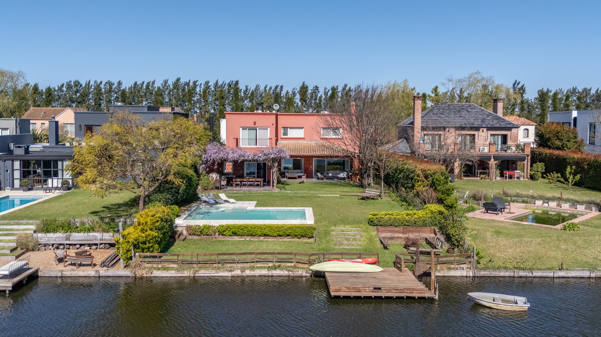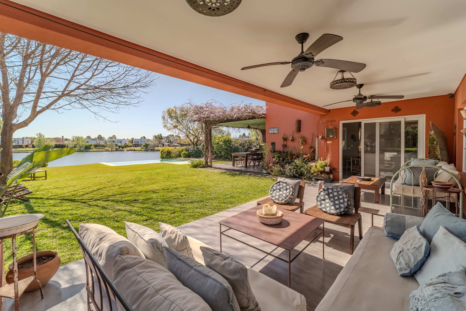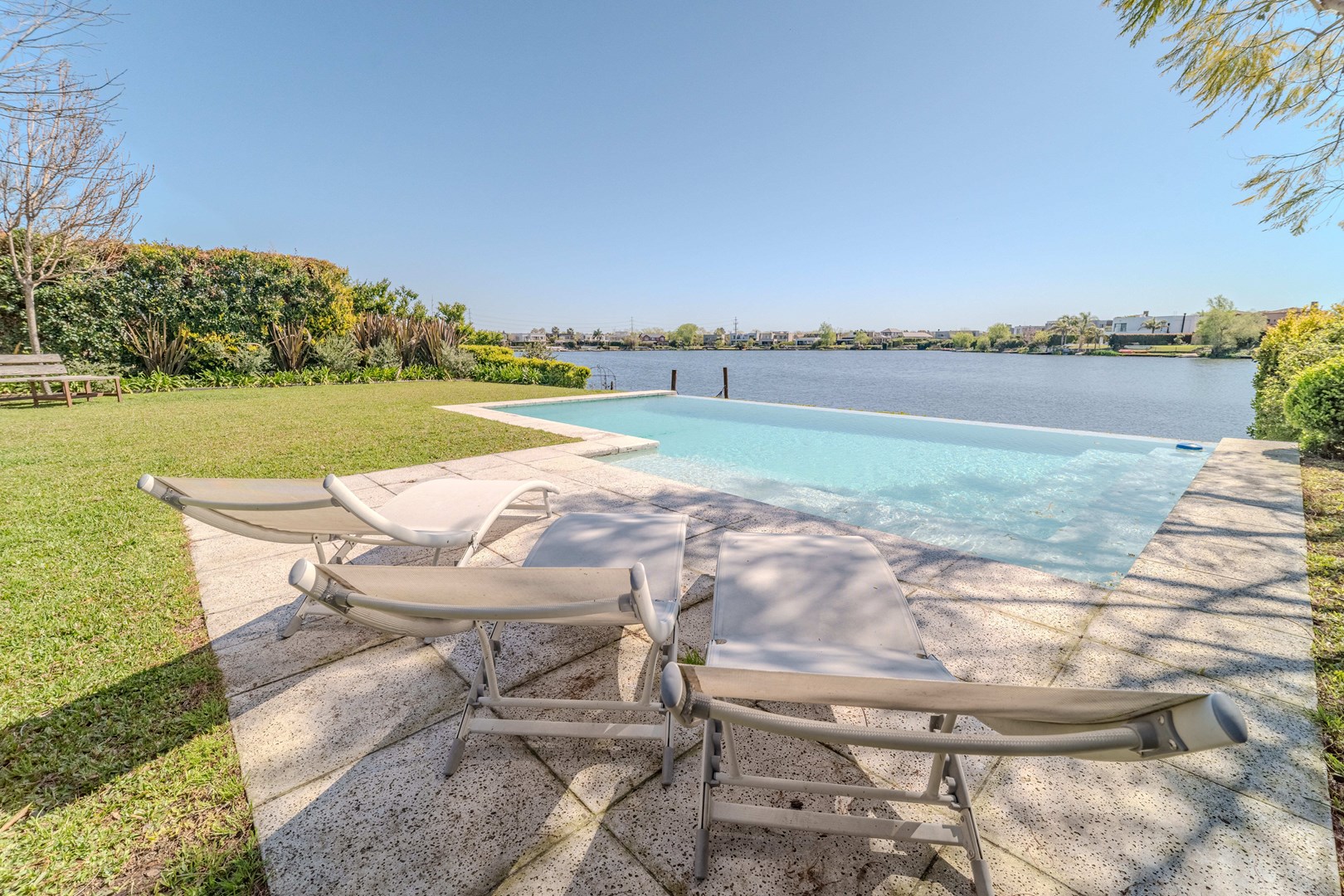 Excelente casa a la laguna en Talar del Lago II en Venta, Casa con alma desarrollada en dos plantas con vistas espectaculares a la laguna, orientación noroeste, excelente distribución y ambientes amplios y luminosos. En planta baja: ingreso a través de patio delantero, hall de ingreso, escritorio, family con ingreso desde el patio delantero y desde adentro, toilette, living con chimenea y comedor, ambos con grandes ventanales a la laguna, cocina independiente muy bien equipada con comedor diario y salida a galería, lavadero, dependencia de servicio con baño. En planta alta: 4 dormitorios: una master suite con balcón terraza con vista plena a la laguna, una suite junior con placard y baño completo y otros dos dormitorios con baño compartido más un quinto ambiente tipo studio/escritorio con vista a laguna, muy luminoso. Exterior: dos galerías, una de ellas con parrilla con cerramiento, horno de barro, pileta revestida con borde infinito y solarium, Jardín parquizado con grama bahiana, riego automático, fogonero, deck, muelle y cuarto de herramientas en uno de sus laterales. Estacionamiento cubierto para 3 autos y descubierto para 4 autos más. La casa esa equipada con equipos de Aire Acondicionado en todos los ambientes Agua caliente a través de termotanque de alta recuperación , marca Reheem, calefacción por caldera Baxi con regulación Nest inteligente El lote es de forma regular, aproximadamente de 20m de frente por 47 m de fondo, bien ubicado y de excelente orientación. EL barrio Talar II tiene 581 lotes de 800m2 promedio sobre una superficie de 80 has y una laguna de 8 has donde se puede practicar deportes náuticos sin motor, y pesca deportiva. Cuenta con canchas de tenis con iluminación, Club House con restaurant, piletas para adultos y otra para niños, gimnasio y canchas de football.
