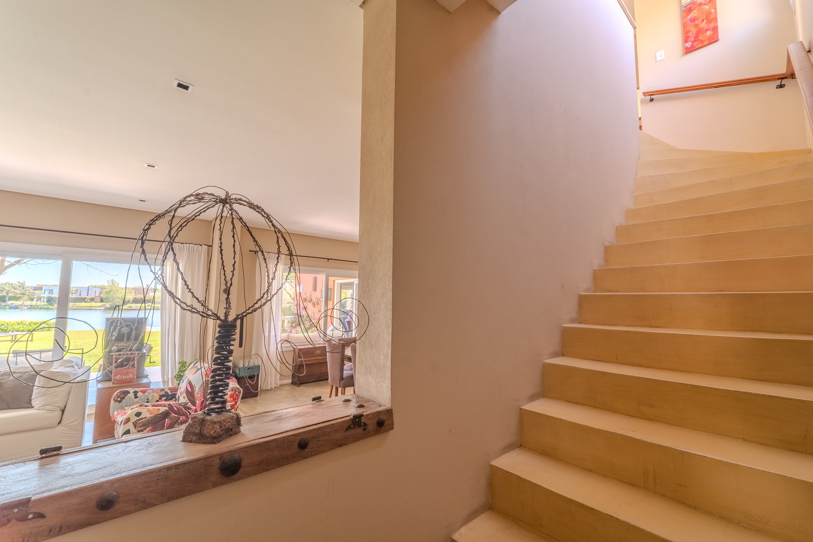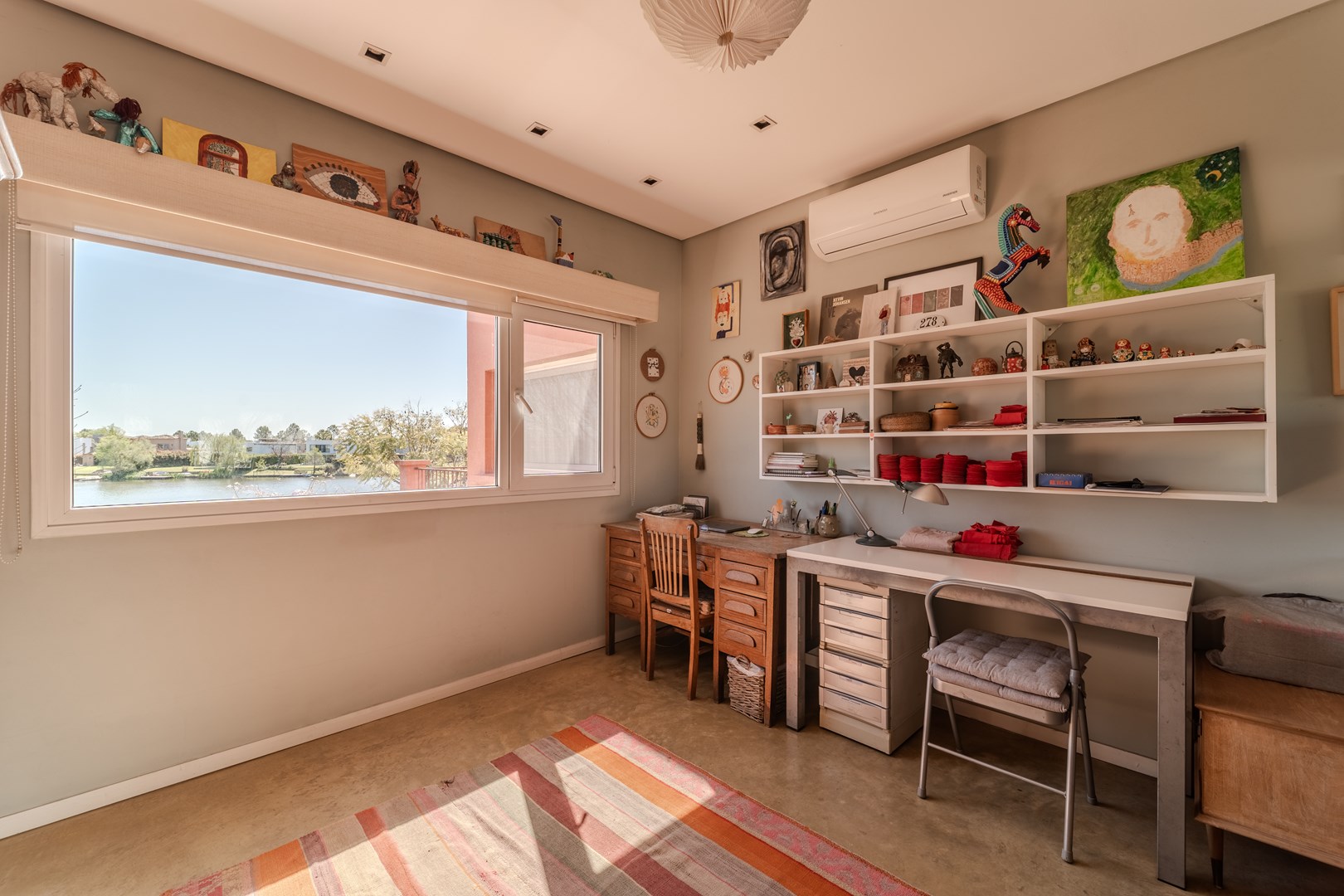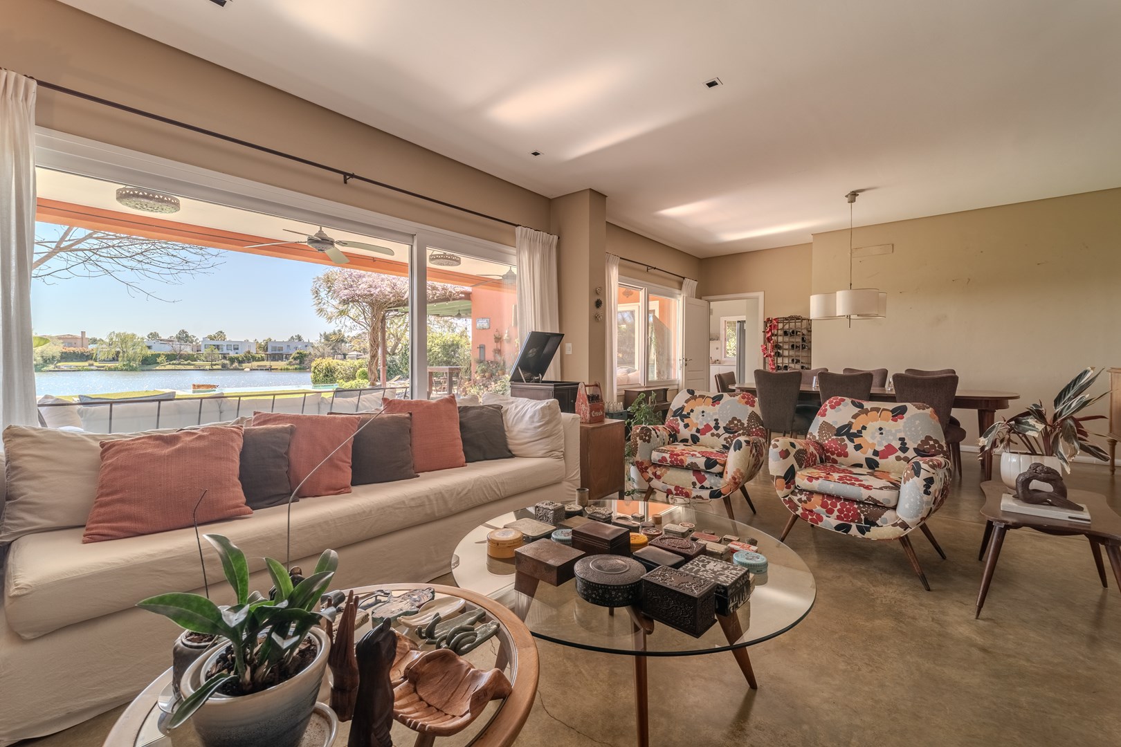 Excelente casa a la laguna en Talar del Lago II en Venta, Casa con alma desarrollada en dos plantas con vistas espectaculares a la laguna, orientación noroeste, excelente distribución y ambientes amplios y luminosos. En planta baja: ingreso a través de patio delantero, hall de ingreso, escritorio, family con ingreso desde el patio delantero y desde adentro, toilette, living con chimenea y comedor, ambos con grandes ventanales a la laguna, cocina independiente muy bien equipada con comedor diario y salida a galería, lavadero, dependencia de servicio con baño. En planta alta: 4 dormitorios: una master suite con balcón terraza con vista plena a la laguna, una suite junior con placard y baño completo y otros dos dormitorios con baño compartido más un quinto ambiente tipo studio/escritorio con vista a laguna, muy luminoso. Exterior: dos galerías, una de ellas con parrilla con cerramiento, horno de barro, pileta revestida con borde infinito y solarium, Jardín parquizado con grama bahiana, riego automático, fogonero, deck, muelle y cuarto de herramientas en uno de sus laterales. Estacionamiento cubierto para 3 autos y descubierto para 4 autos más. La casa esa equipada con equipos de Aire Acondicionado en todos los ambientes Agua caliente a través de termotanque de alta recuperación , marca Reheem, calefacción por caldera Baxi con regulación Nest inteligente El lote es de forma regular, aproximadamente de 20m de frente por 47 m de fondo, bien ubicado y de excelente orientación. EL barrio Talar II tiene 581 lotes de 800m2 promedio sobre una superficie de 80 has y una laguna de 8 has donde se puede practicar deportes náuticos sin motor, y pesca deportiva. Cuenta con canchas de tenis con iluminación, Club House con restaurant, piletas para adultos y otra para niños, gimnasio y canchas de football.