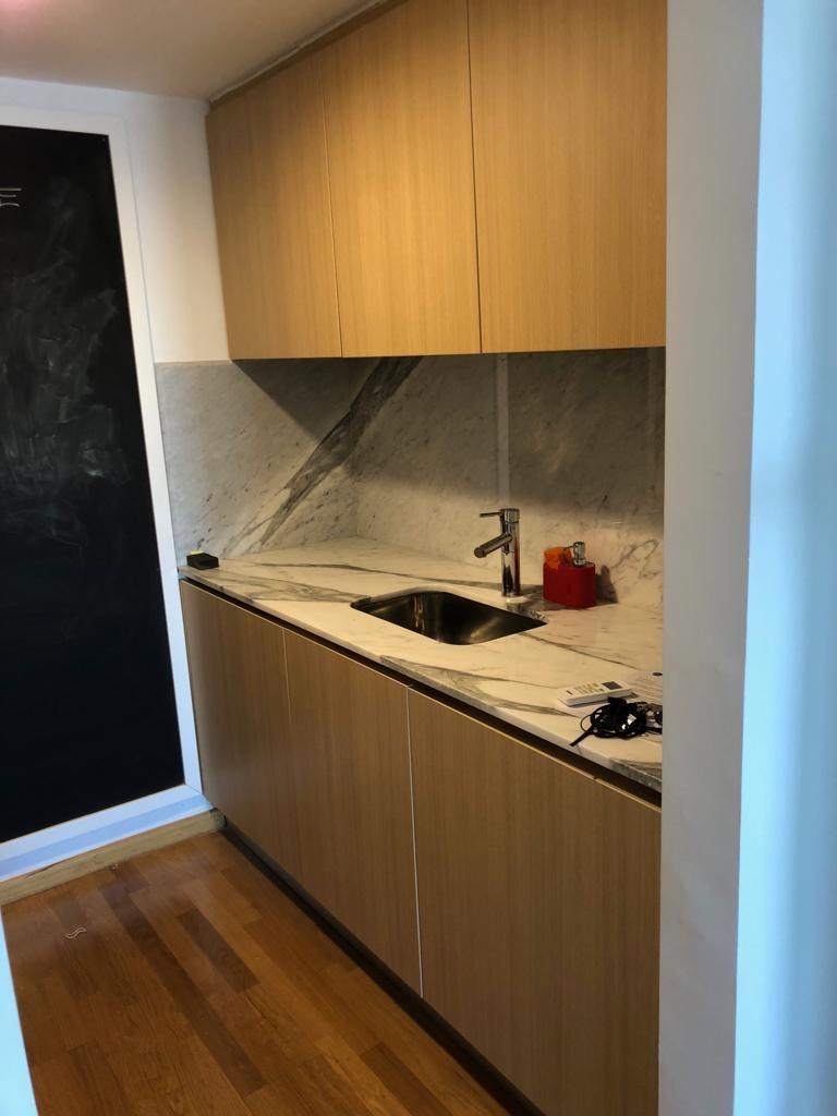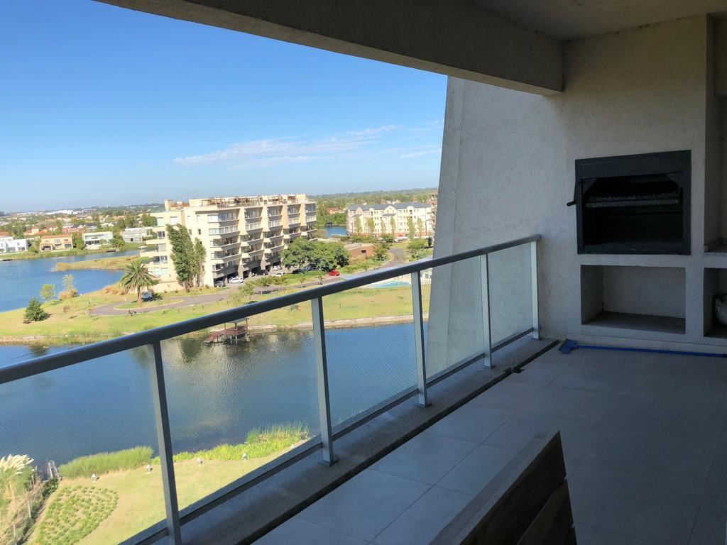 Living comedor con cocina semi integrada y salida a gran balcón con parrilla, hermosa vista al lago central.-