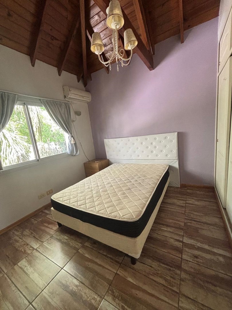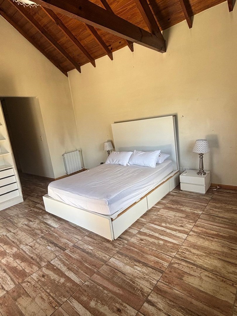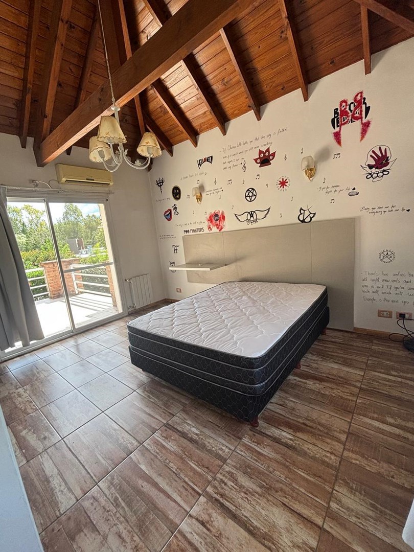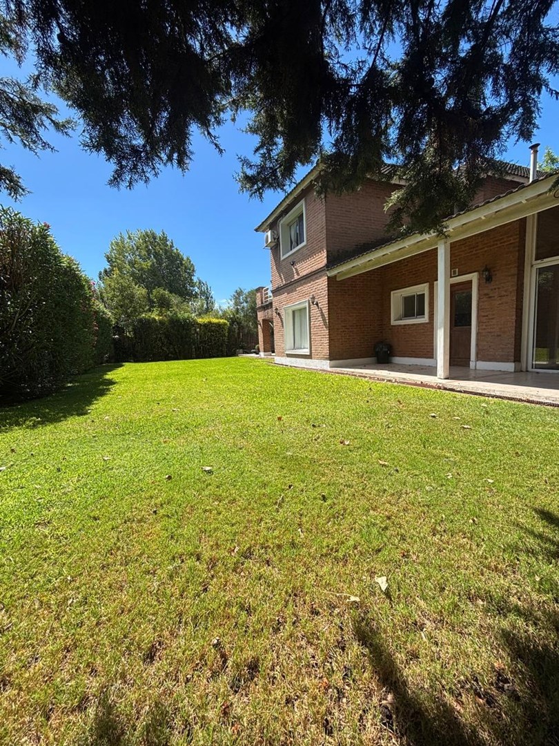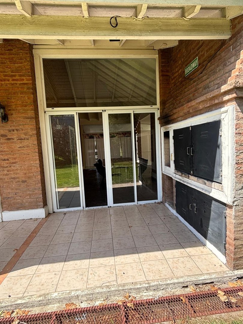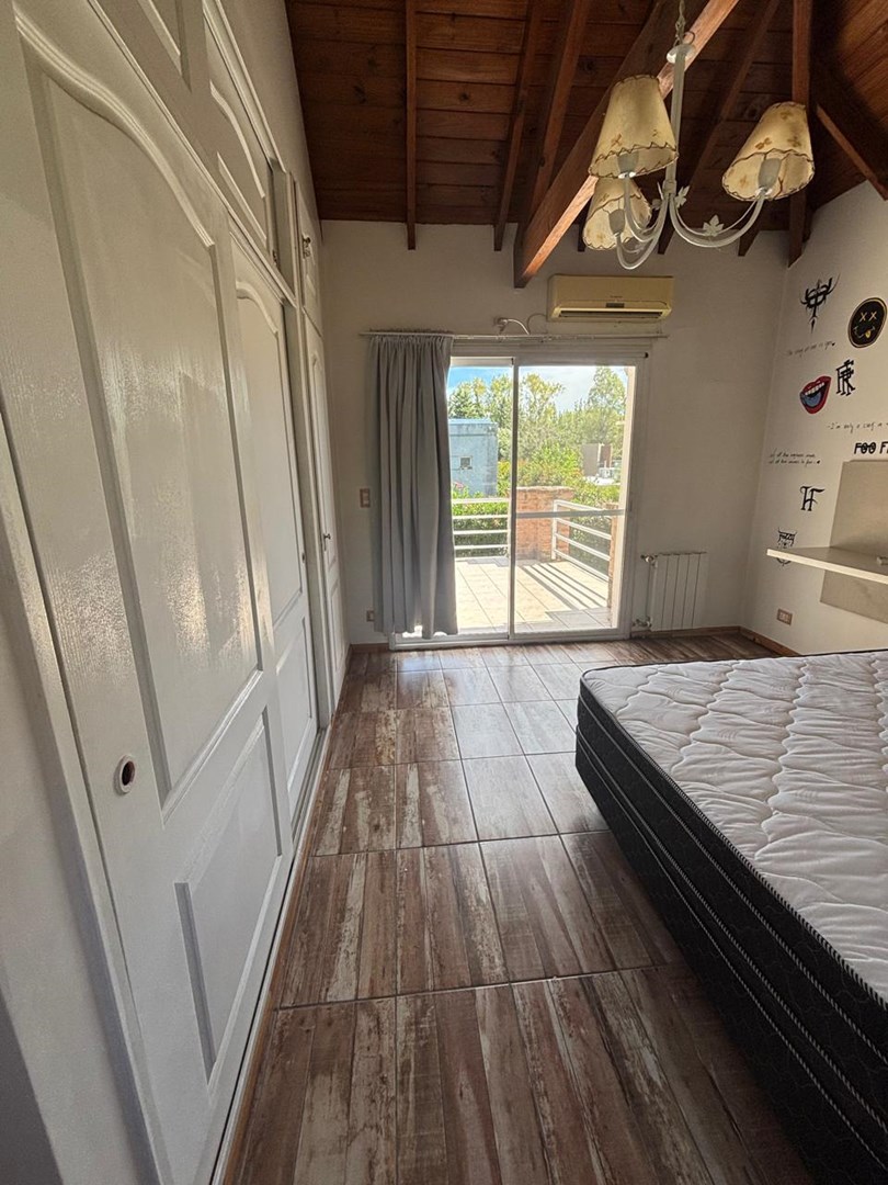 Casa desarrollada en dos plantas. PLANTA BAJA Amplio living con hogar. Comedor con barra que integra la cocina. Lavadero.(lavarropas) Baño de recepción con ducha. Dormitorio/ escritorio, con cama simple y carro con colchón. Habitación con baño, entrada independientemente. Amplio SUM salida directa a galería con parrilla. Cochera semi cubierta para 2 autos. PLANTA ALTA Un dormitorio en suite, amplios placares, salida al balcón 2 dormitorios. Un baño completo. EXTERIOR Jardín parquizado pileta de natación con solárium. La casa se calefacciona con radiadores, tiene aires acondicionados. El Barrio cuenta con una vegetación exuberante, pileta de natación, confitería SUM, canchas de fútbol, cancha de tenis y pádel y cancha multideportes, plaza de juego para chicos. Parada venta es apto crédito. Alquiler temporario mínimo 3 días más valor publicado por día más gastos.
