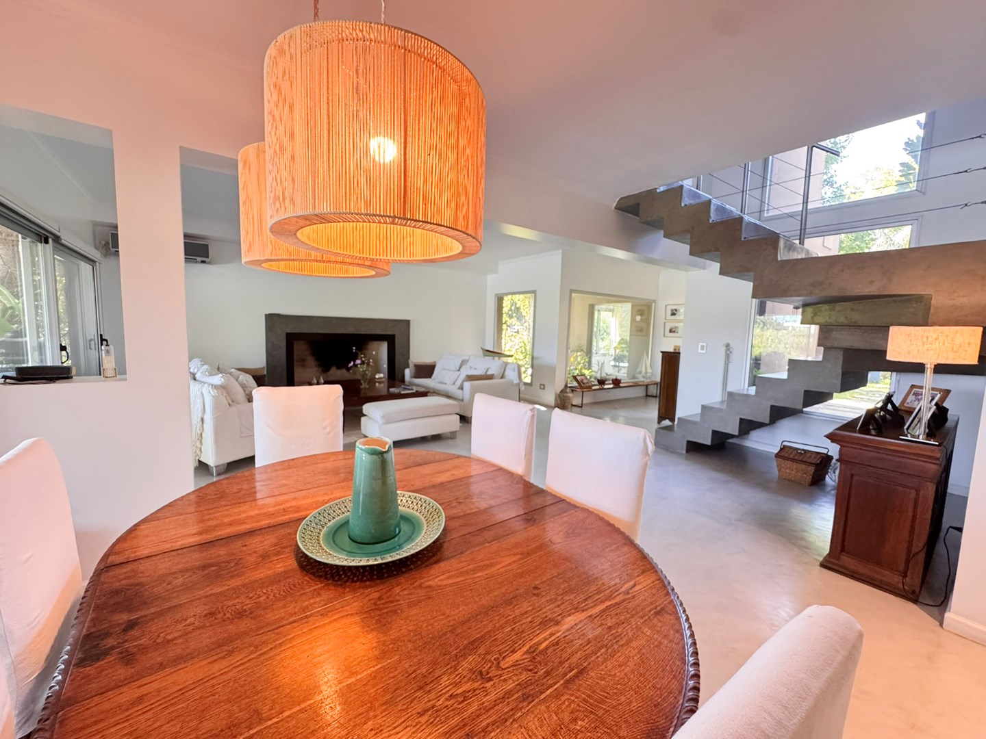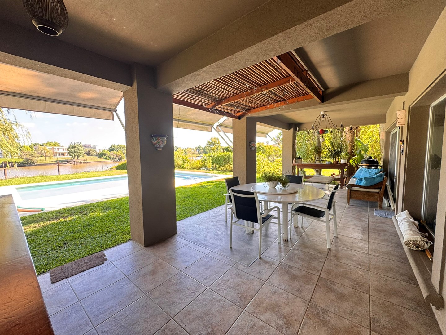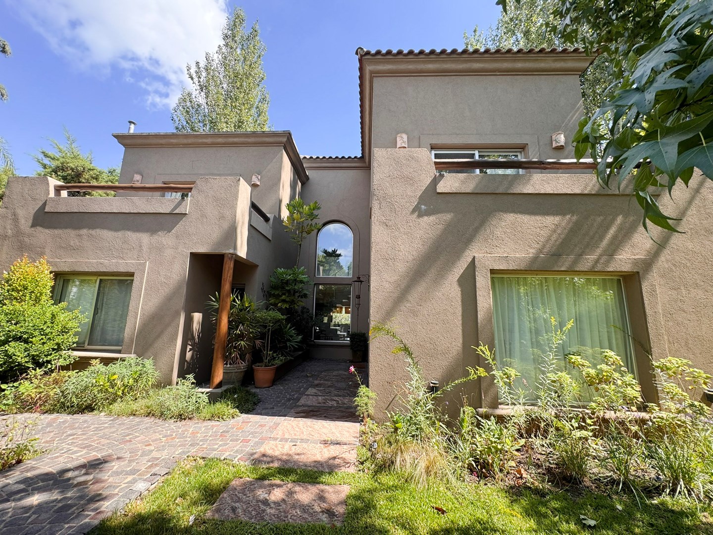 Casa muy linda en venta, de diseño mexicano con salida y una gran vista al río, en el barrio Santa Catalina, en Villanueva. Práctica, buena distribución y de muy buena construcción. Ubicada a metros de la entrada al barrio. La casa fue pensada y hecha para vivir por sus dueños y tiene detalles que lo demuestran en cada ambiente. PB: Escritorio rodeado de verde, paños fijos al exterior. Toilette. Living comedor integrado con hogar y salida a la galería. Cocina integrada también con isla al comedor diario o family, y con salida a la galería. Lavadero cómodo, con mucho lugar de guardado y dependencia de servicio. PA: Playroom amplio con posibilidad de construir 4to dormitorio en suite. Con ventana al frente de la casa. Suite principal con hermosa vista al río desde el balcón. Vestidor amplio y cómodo, con ventana que da aire y luz. Otros dos dormitorios que comparten un baño, cada uno con salida al balcón, ambos con vistas muy abiertas y lindas ya sea al frente de la casa o al río. Jardín parquizado, ¡divino! con piscina con venecitas. Riego automático. Gran muelle al río Aberturas de aluminio con DVH Pisos de cemento alisado Calefacción por losa radiante
