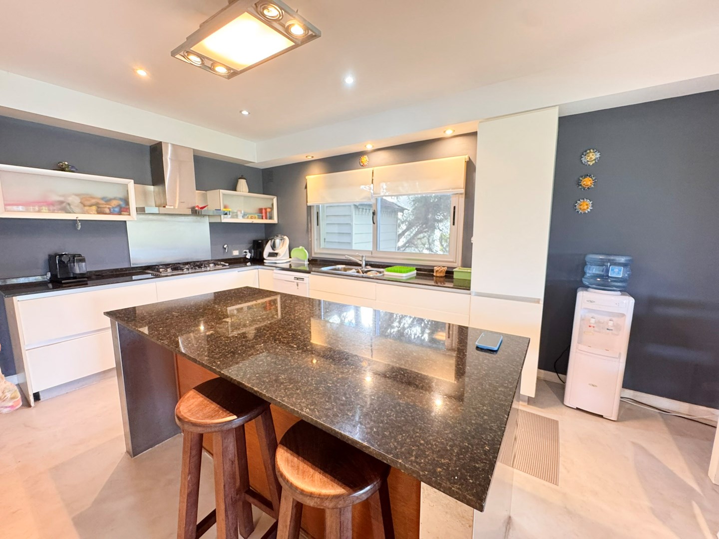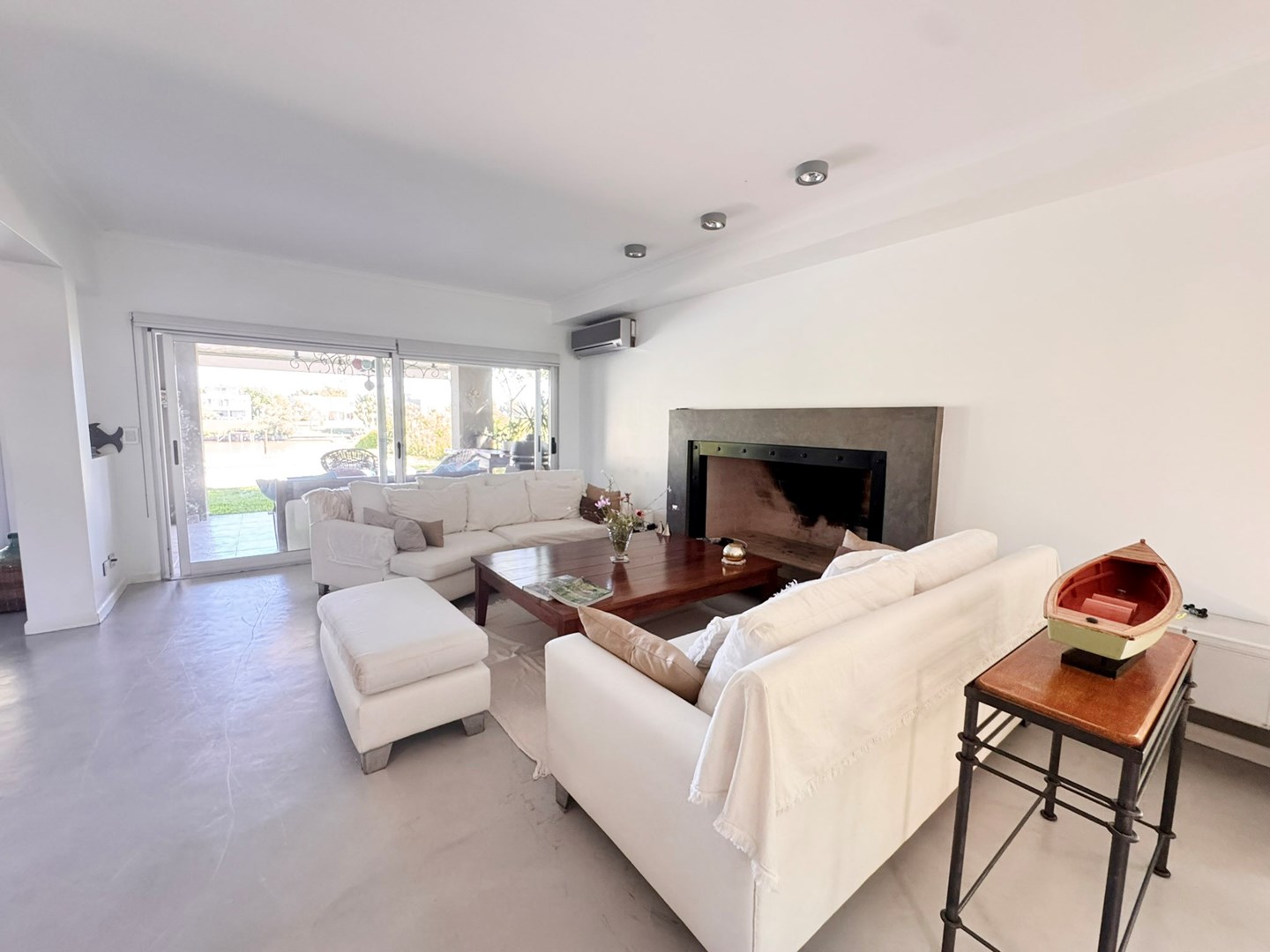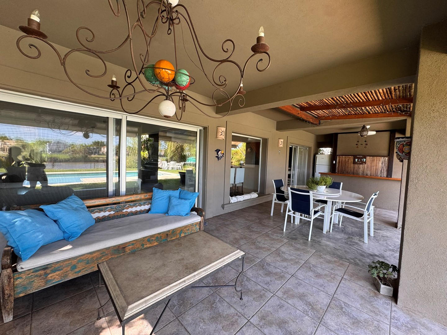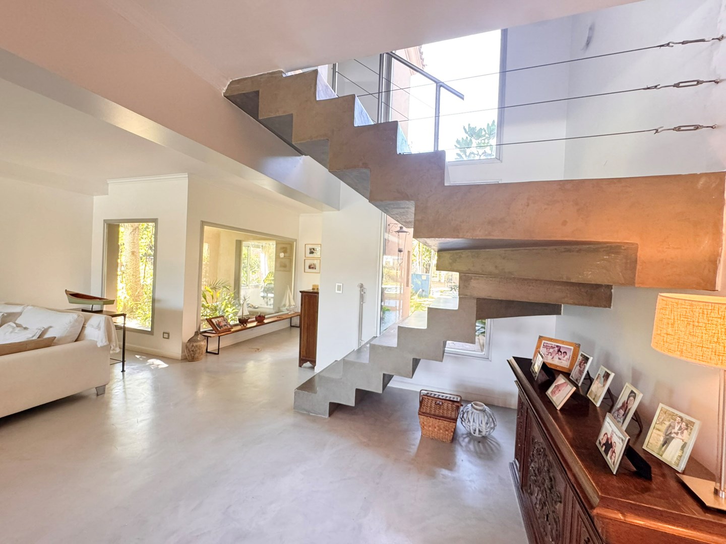 Casa muy linda en venta, de diseño mexicano con salida y una gran vista al río, en el barrio Santa Catalina, en Villanueva. Práctica, buena distribución y de muy buena construcción. Ubicada a metros de la entrada al barrio. La casa fue pensada y hecha para vivir por sus dueños y tiene detalles que lo demuestran en cada ambiente. PB: Escritorio rodeado de verde, paños fijos al exterior. Toilette. Living comedor integrado con hogar y salida a la galería. Cocina integrada también con isla al comedor diario o family, y con salida a la galería. Lavadero cómodo, con mucho lugar de guardado y dependencia de servicio. PA: Playroom amplio con posibilidad de construir 4to dormitorio en suite. Con ventana al frente de la casa. Suite principal con hermosa vista al río desde el balcón. Vestidor amplio y cómodo, con ventana que da aire y luz. Otros dos dormitorios que comparten un baño, cada uno con salida al balcón, ambos con vistas muy abiertas y lindas ya sea al frente de la casa o al río. Jardín parquizado, ¡divino! con piscina con venecitas. Riego automático. Gran muelle al río Aberturas de aluminio con DVH Pisos de cemento alisado Calefacción por losa radiante