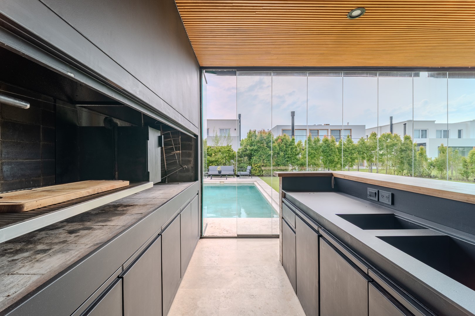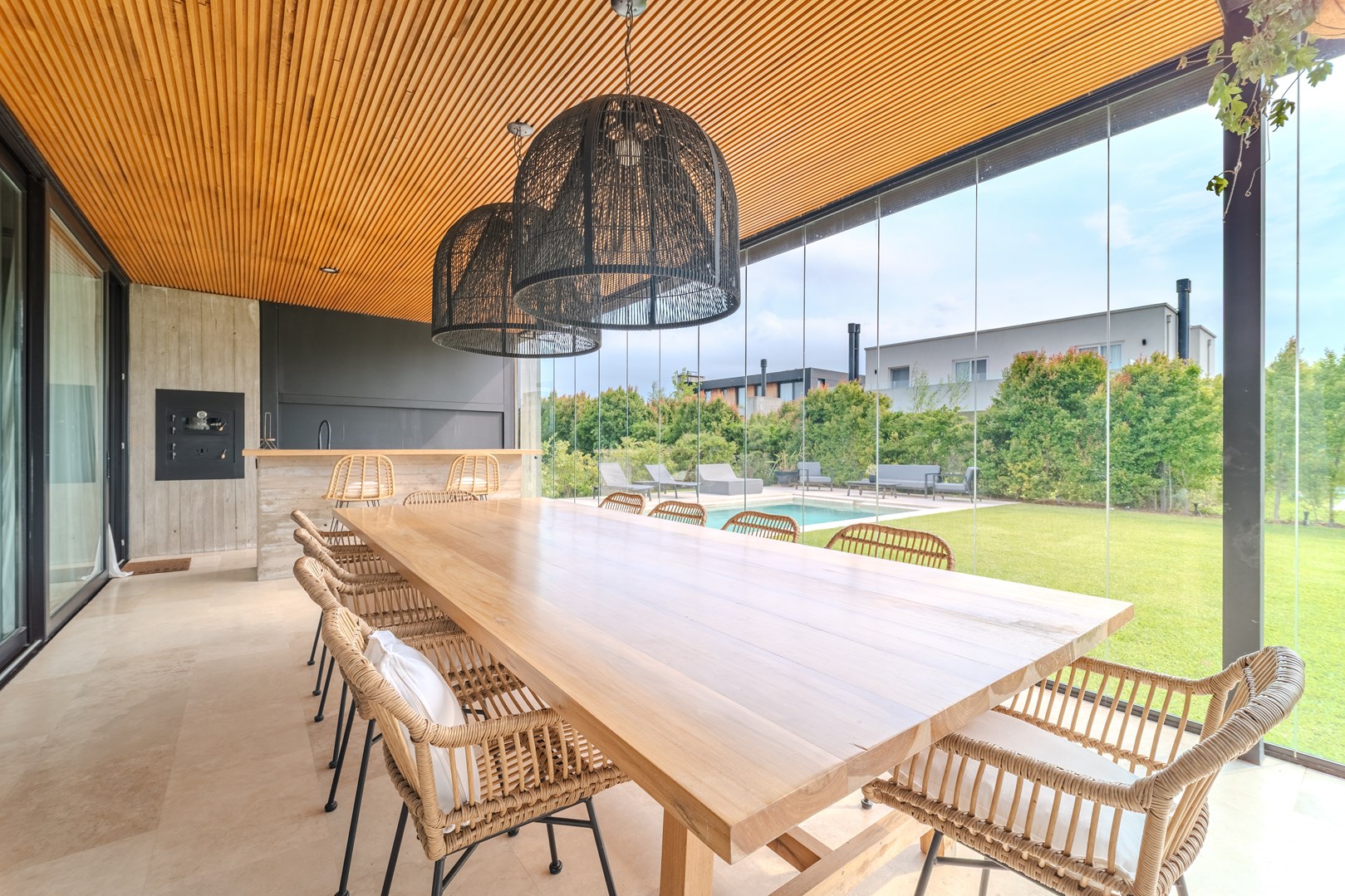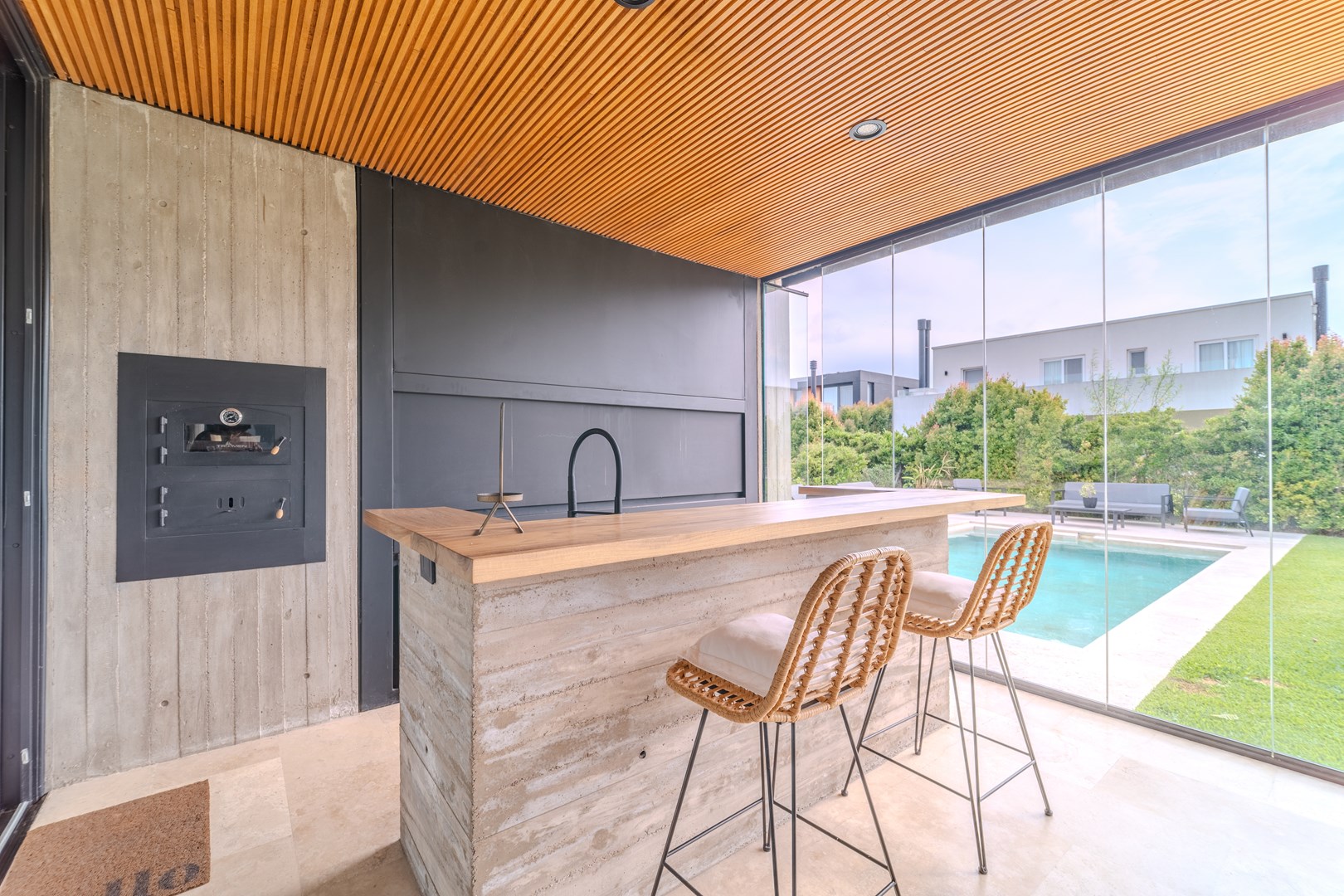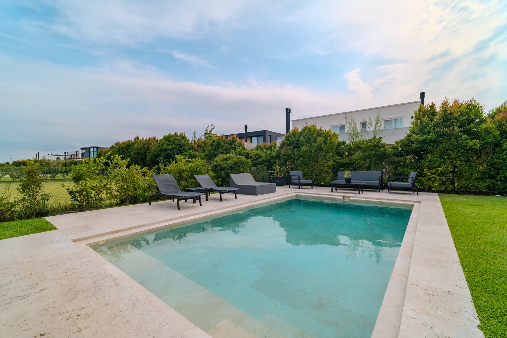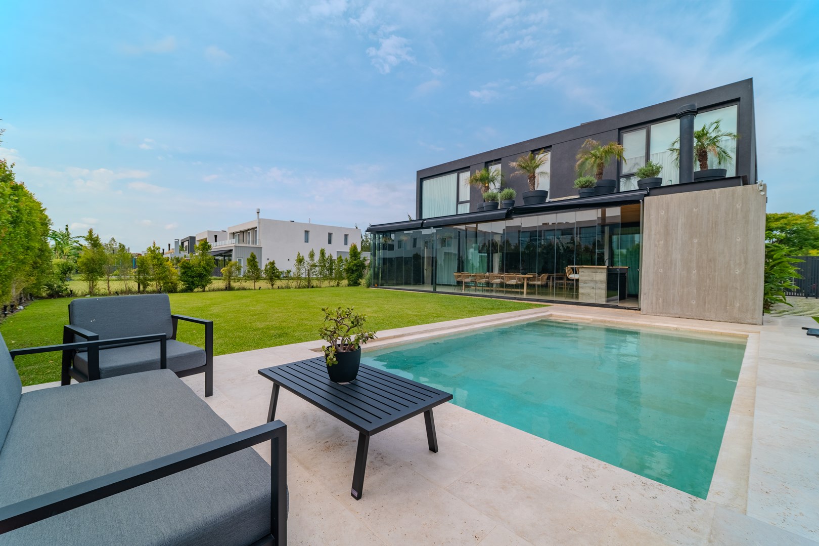 Casa en venta en el Barrio Virazon, Nordelta. Exclusiva casa en lote interno. Gran diseño, calidades constructivas y detalles de terminación, únicos! Techos de hormigón y detalles en paredes. Hall de recepción, toilette. Amplio living comedor con cocina con semi integrada con barra. Jardín de invierno con vistas desde todos los sectores internos de la casa. Cava. Despensa. Lavadero. Dormitorio de servicio y baño. Galería con parrilla y horno Tromen con sector de comedor y de living. Cerramiento de reiki. Piscina toda revestida en travertino y con posibilidad de climatizar. Baño de piscina. En Planta Alta; playroom. Cinco dormitorios. Master suite con vestidor y baño compartimentado. Dos Jrs Suites y otros 2 dormitorios en semisuite. Pisos de travertino en toda la casa. Dos calderas. Aires acondicionados en todos los ambientes. Aberturas DVH. La casa es impecable, de revista, para mudarse ya!
