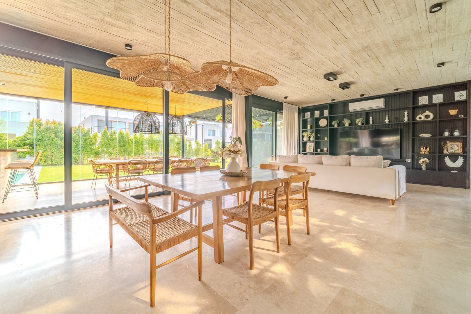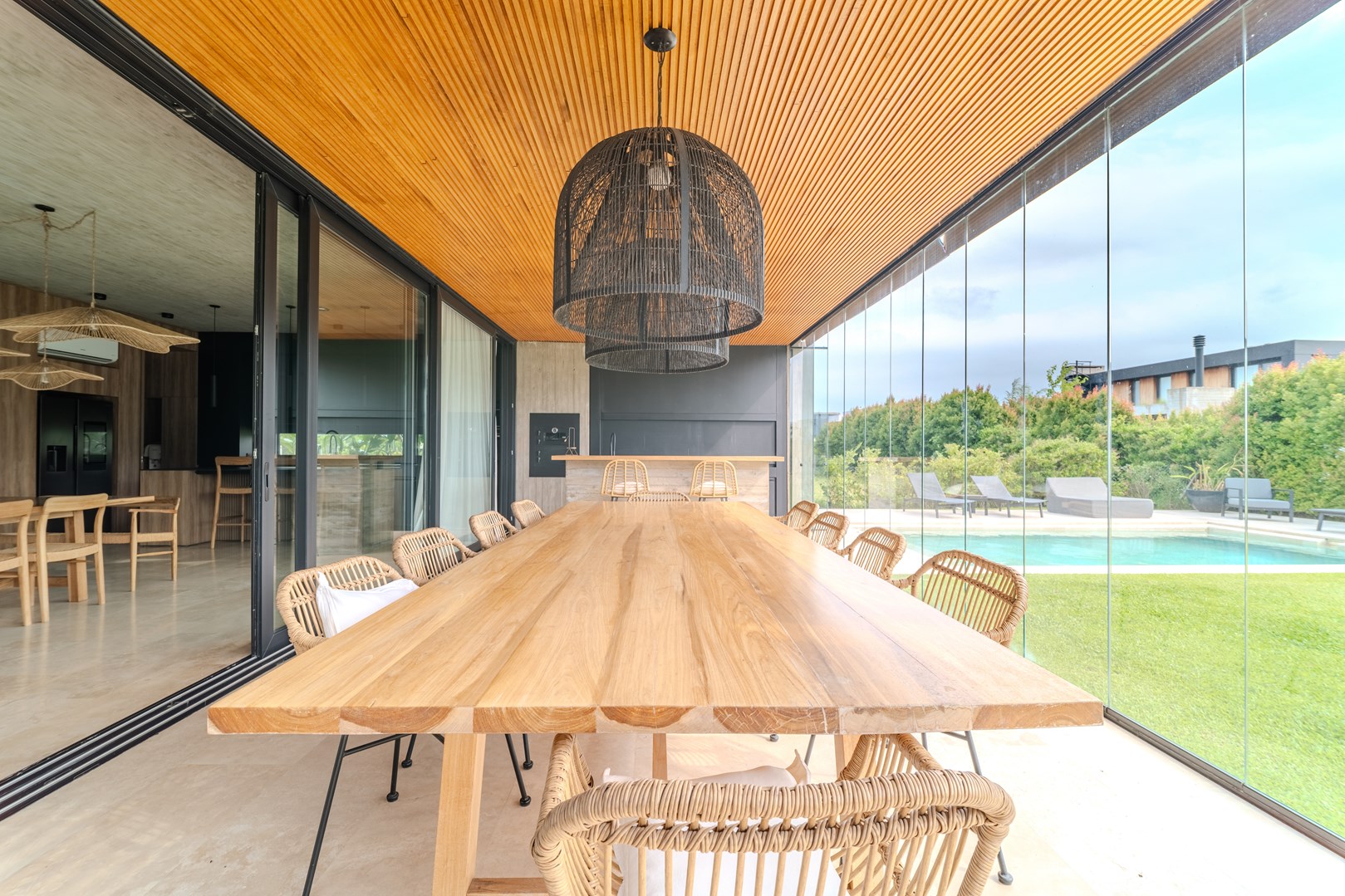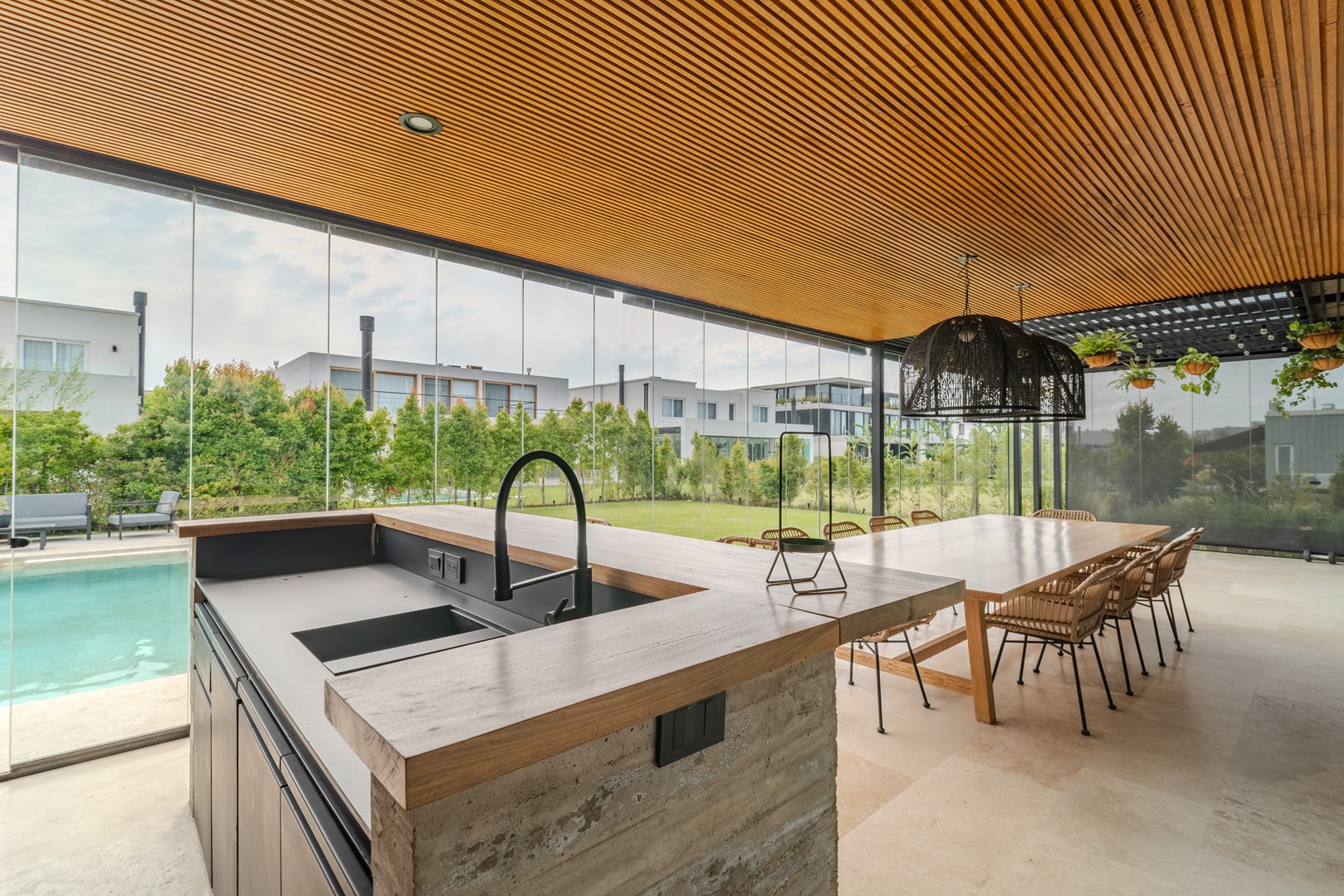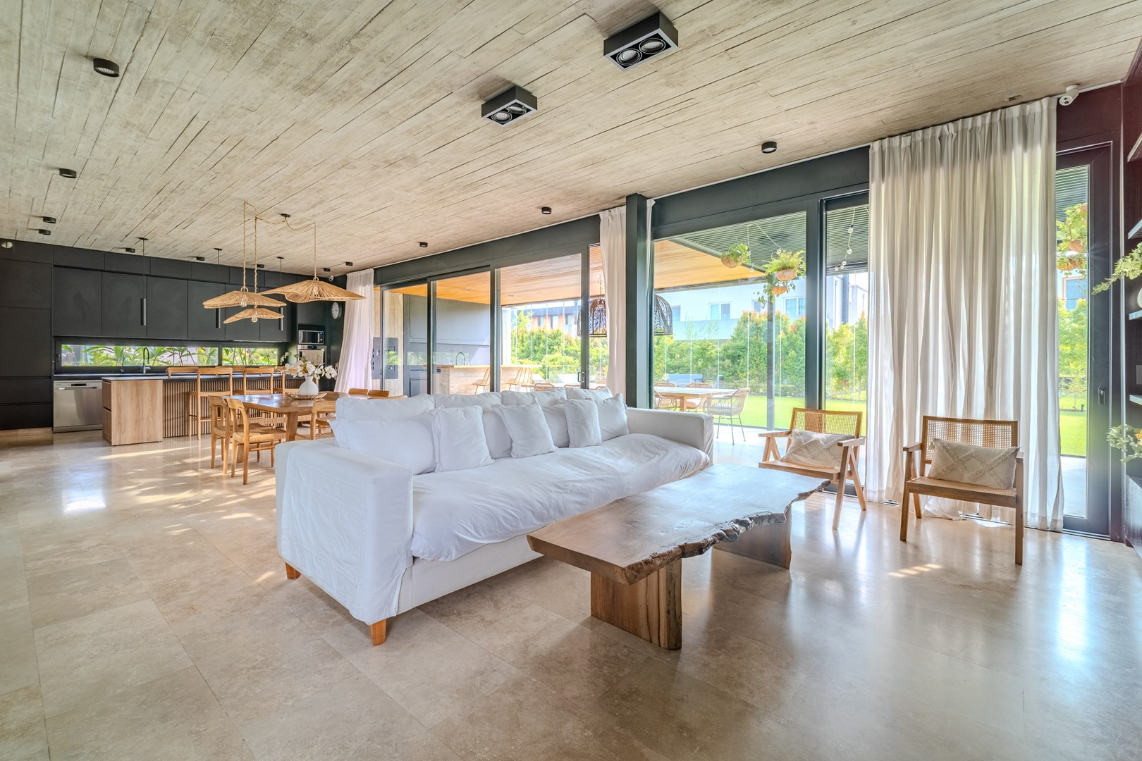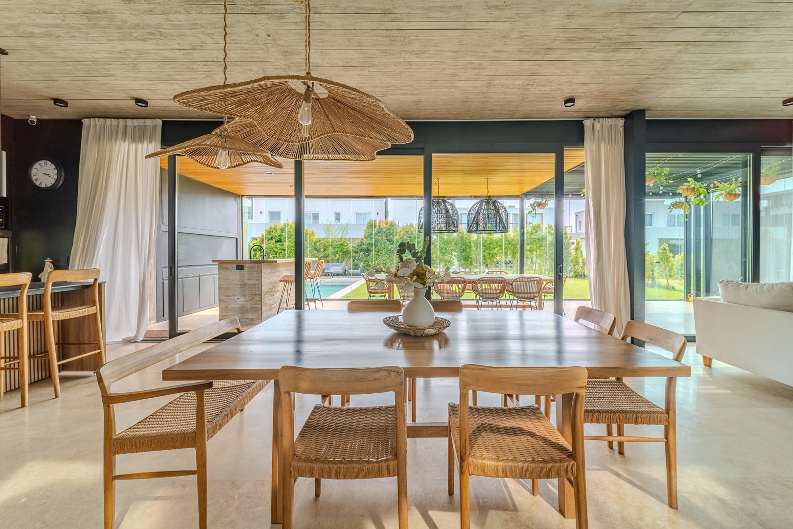 Casa en venta en el Barrio Virazon, Nordelta. Exclusiva casa en lote interno. Gran diseño, calidades constructivas y detalles de terminación, únicos! Techos de hormigón y detalles en paredes. Hall de recepción, toilette. Amplio living comedor con cocina con semi integrada con barra. Jardín de invierno con vistas desde todos los sectores internos de la casa. Cava. Despensa. Lavadero. Dormitorio de servicio y baño. Galería con parrilla y horno Tromen con sector de comedor y de living. Cerramiento de reiki. Piscina toda revestida en travertino y con posibilidad de climatizar. Baño de piscina. En Planta Alta; playroom. Cinco dormitorios. Master suite con vestidor y baño compartimentado. Dos Jrs Suites y otros 2 dormitorios en semisuite. Pisos de travertino en toda la casa. Dos calderas. Aires acondicionados en todos los ambientes. Aberturas DVH. La casa es impecable, de revista, para mudarse ya!