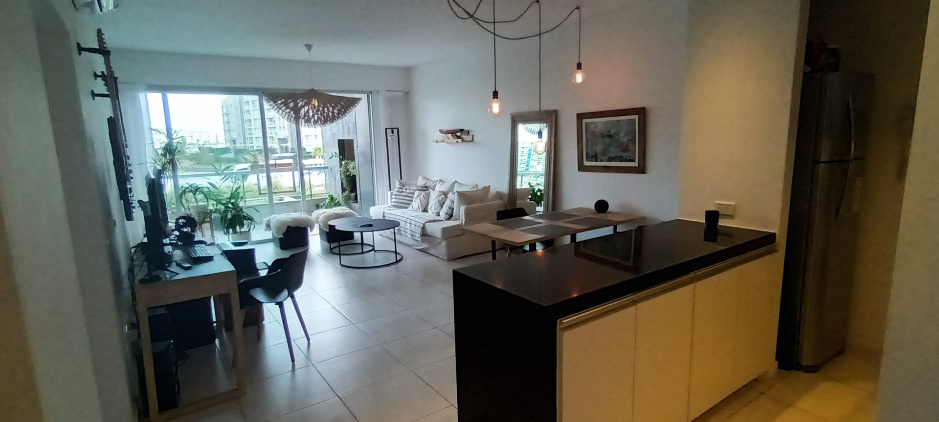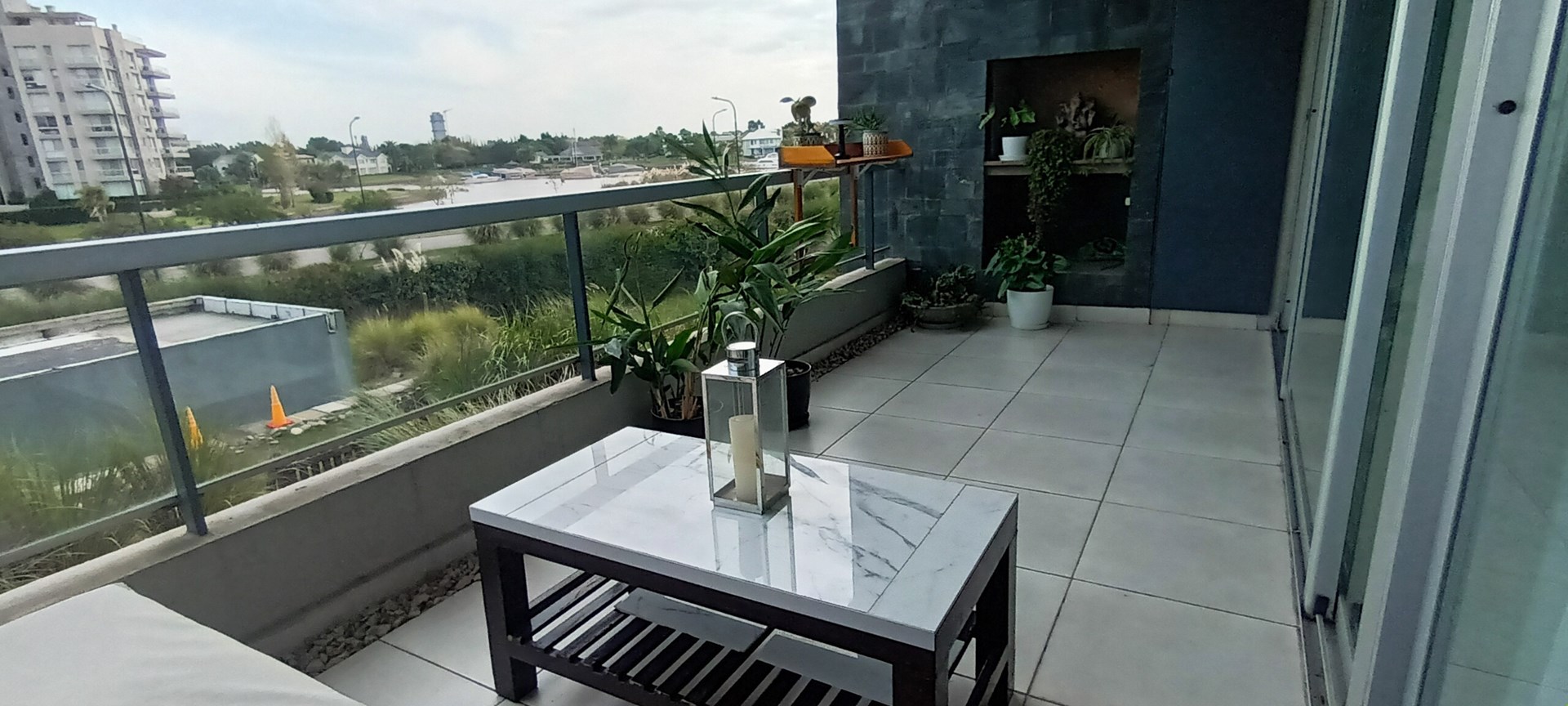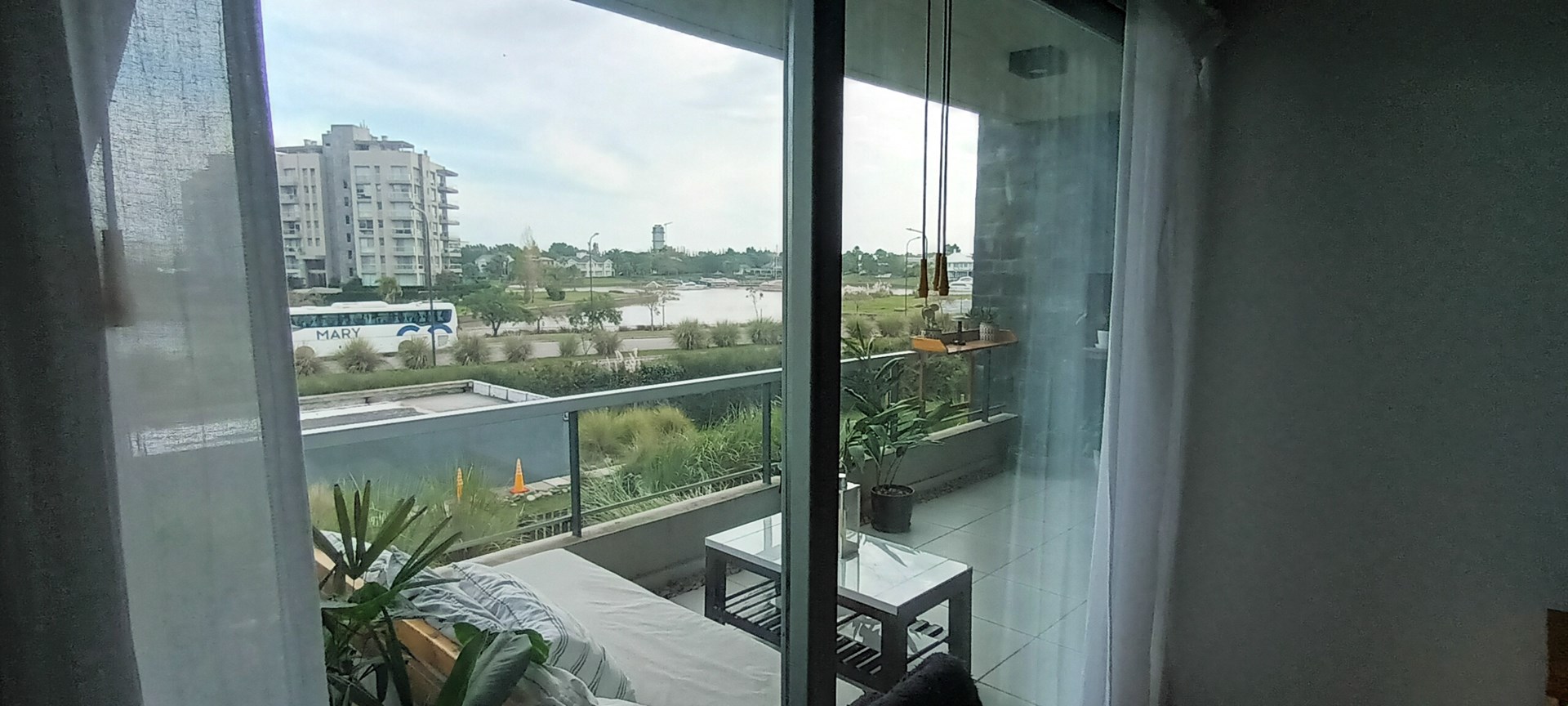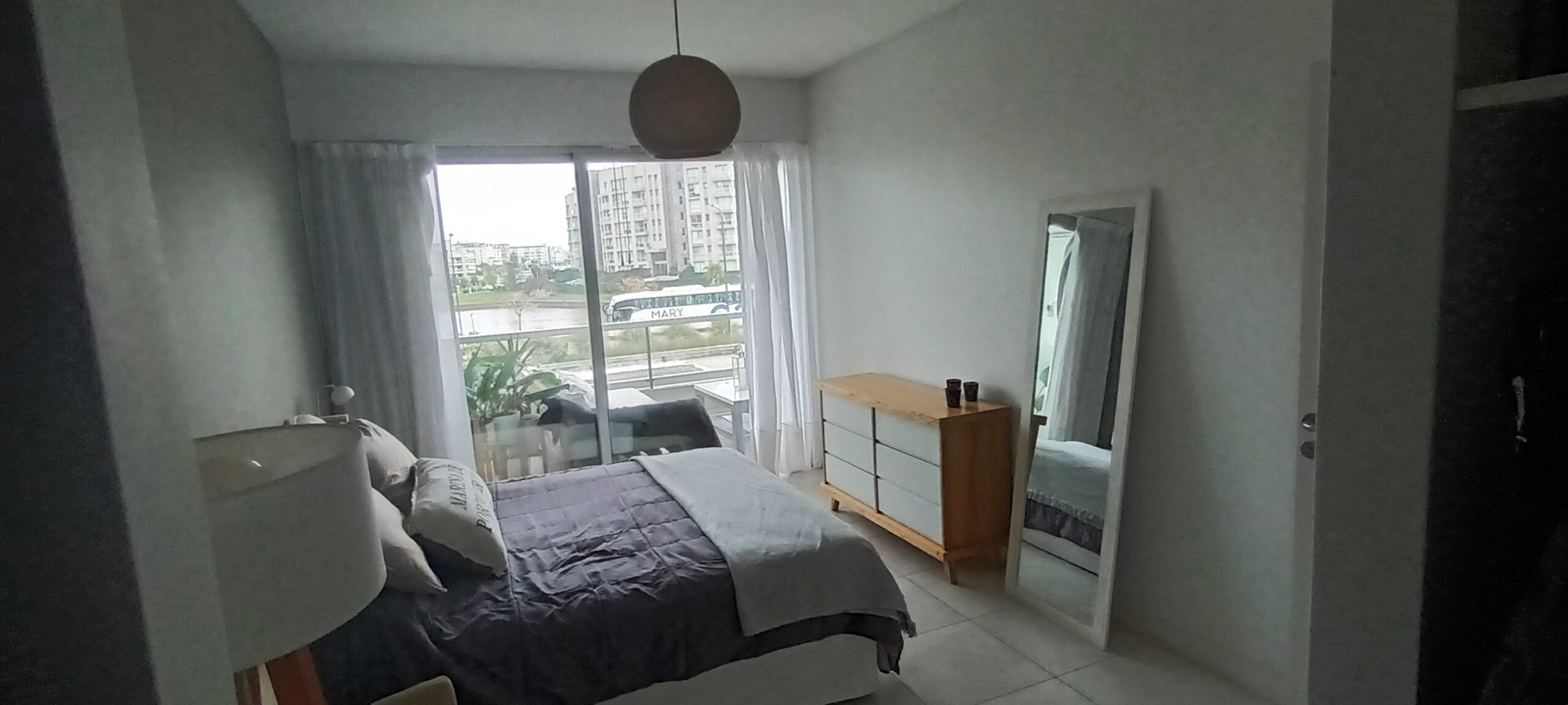 Departamento en alquiler amoblado con vista al Río. Barrio Puerto Escondido, Complejo Qbay Yacht, Nordelta. La unidad es de 2 ambientes amplios, luminoso, con cochera cubierta y baulera. Distribución Living comedor, cocina integrada con barra, lugar para lavarropas o lavavajilla, baño de recepción, 1 dormitorio en suite, baño completo con ducha, vestidor, ambos ambientes dan al frente, tienen salida a un balcón aterrazado con parrilla con vista al RIO, Posee aire acondicionado frio calor en ambos ambientes y piso radiante. Termotanque eléctrico, horno y anafe eléctrico. El complejo cuenta con pileta de natación con borde infinito, sector solárium, vestuarios, salón de usos múltiples, sector para armar un gimnasio y laundry. El Barrio esta ubicado estratégicamente en la Bahía de Nordelta rodeado de restaurantes, centro comercial, supermercados, sanatorio Las Lomas, rápido acceso a la ruta 27 donde hay medios de transportes públicos.