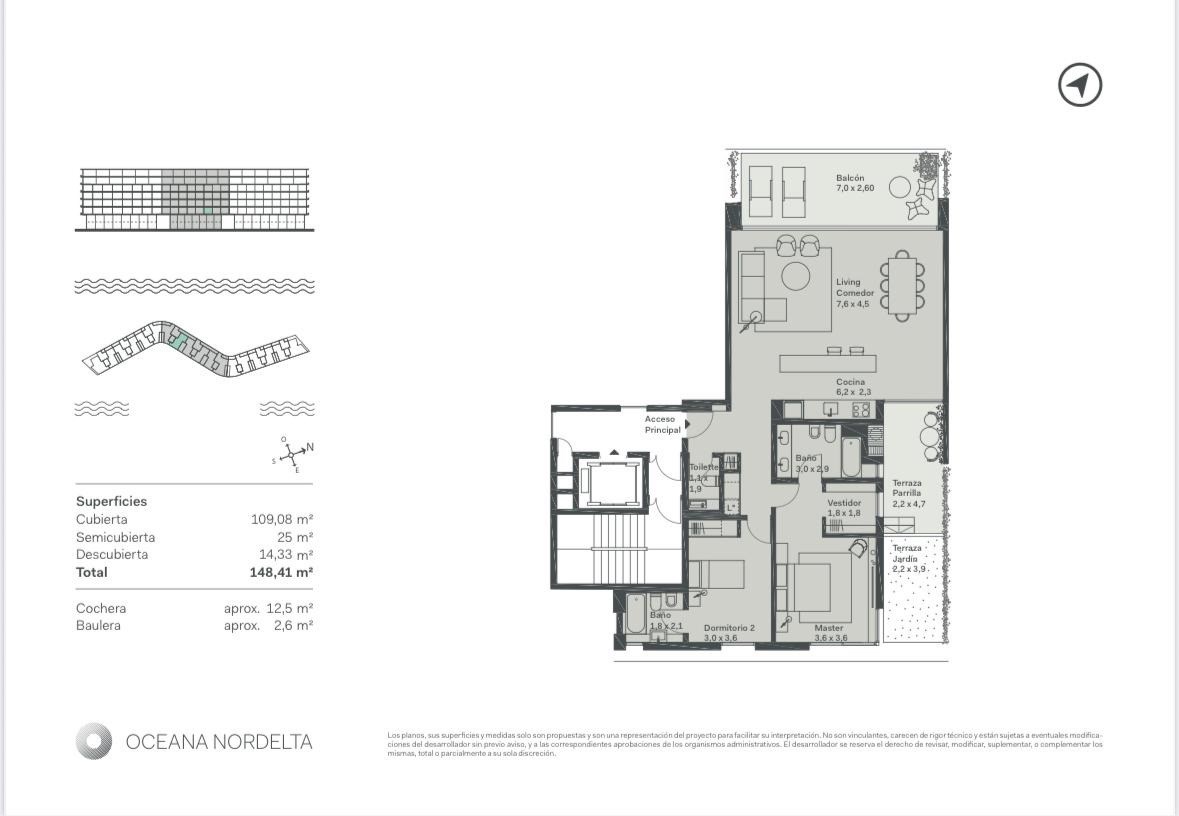 Venta departamento en el nuevo complejo OCEANA , desarrollado por Consultatio de Eduardo Costantini y construído por Grupo Acqua, Consultar por otras unidades disponibles! Unidad de 3 ambientes ubicado en tercer piso. con gran diseño, excelente calidad y sofisticación, se fusionan para dar lugar a este exclusivo edificio ubicado en uno de los mejores macrolotes de la Ciudad. Hall de ingreso, toilette de recepción, living comedor con cocina integrada, balcón terraza con vista al lago, y segundo balcón terraza con parrilla. Master suite con vestidor y baño con doble bacha; segundo dormitorio también con baño en suite y placard. Cochera cubierta y baulera. El compleja cuenta con 2400 m2 de amenities, entre los que se encuentran piscina exterior, piscina cubierta climatizada de 20 m2, Salón de usos múlitples, gran gimnasio, sala de yoga, vestuarios, sala de juegos, espacios de cowork, gran jardín sobre el lago central, muelle, más de 8.000 m2 de espacios verdes parquizados y seguridad las 24 hs. El edficio fue diseñado por RDR Arquitectos y Clusellas Ades y ofrece departamentos, townhouses y penthouses de uno a cuatro ambientes, con una calidad constructiva superlativa. Las unidades son en su mayoría pasantes, asegurando una excelente ventilación, además de increíbles vistas del amanecer y del atardecer sobre el lago central de Nordelta.